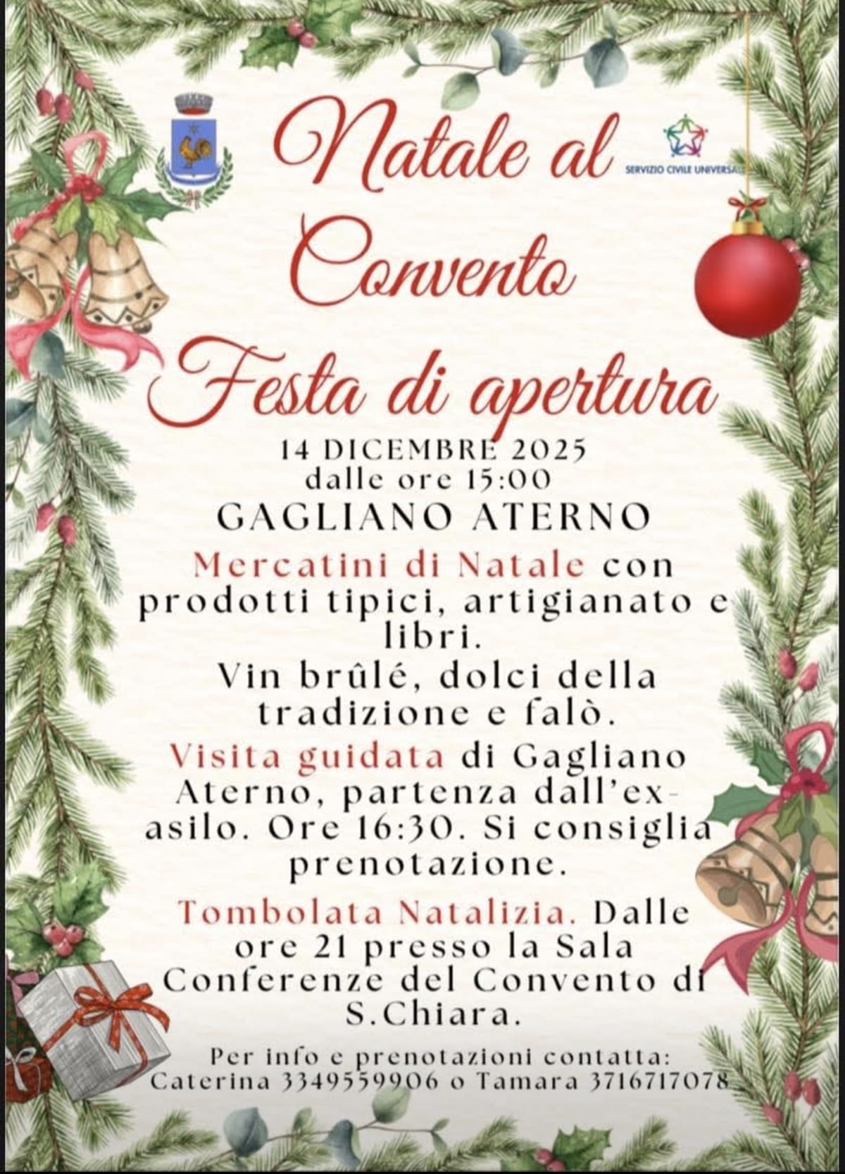 #Musica #Enogastronomia #Tradizioni #Tutela del territorio #Passeggiata naturalistica #Passeggiata #Concerto #Natale #Babbo Natale |